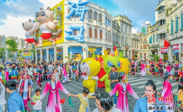 在海口騎樓老街舉行的“海口·我愛魯”海島歡樂大巡游活動,熱鬧非凡。 記者 康登淋 攝