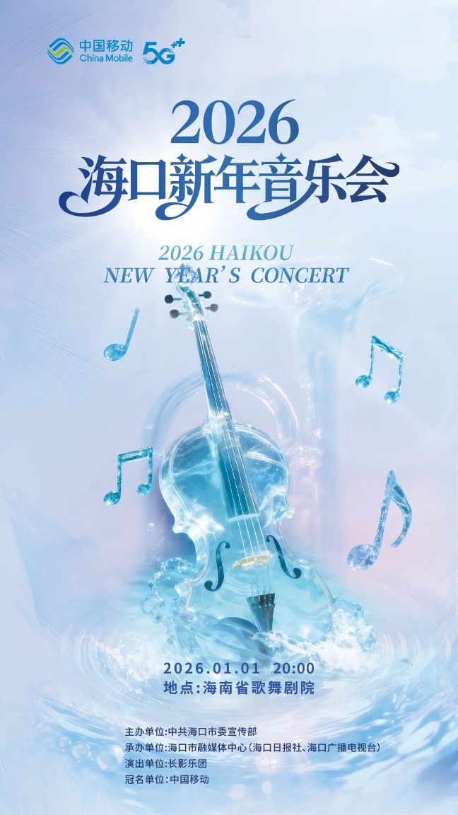 2026年1月1日至2日,在海南省歌舞劇院奏響的2026海口新年音樂會上,國內知名交響樂團長影樂團、指揮張樺、樂團首席何楠攜手優秀歌唱家們,將以澎湃激昂的經典交響樂,與海口觀眾共同迎接新年。